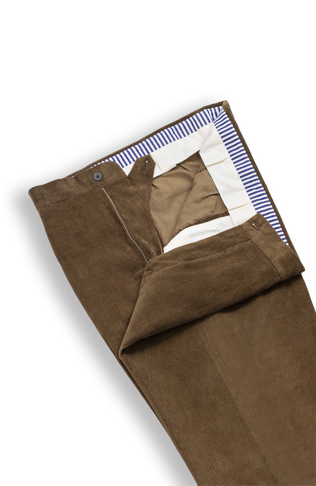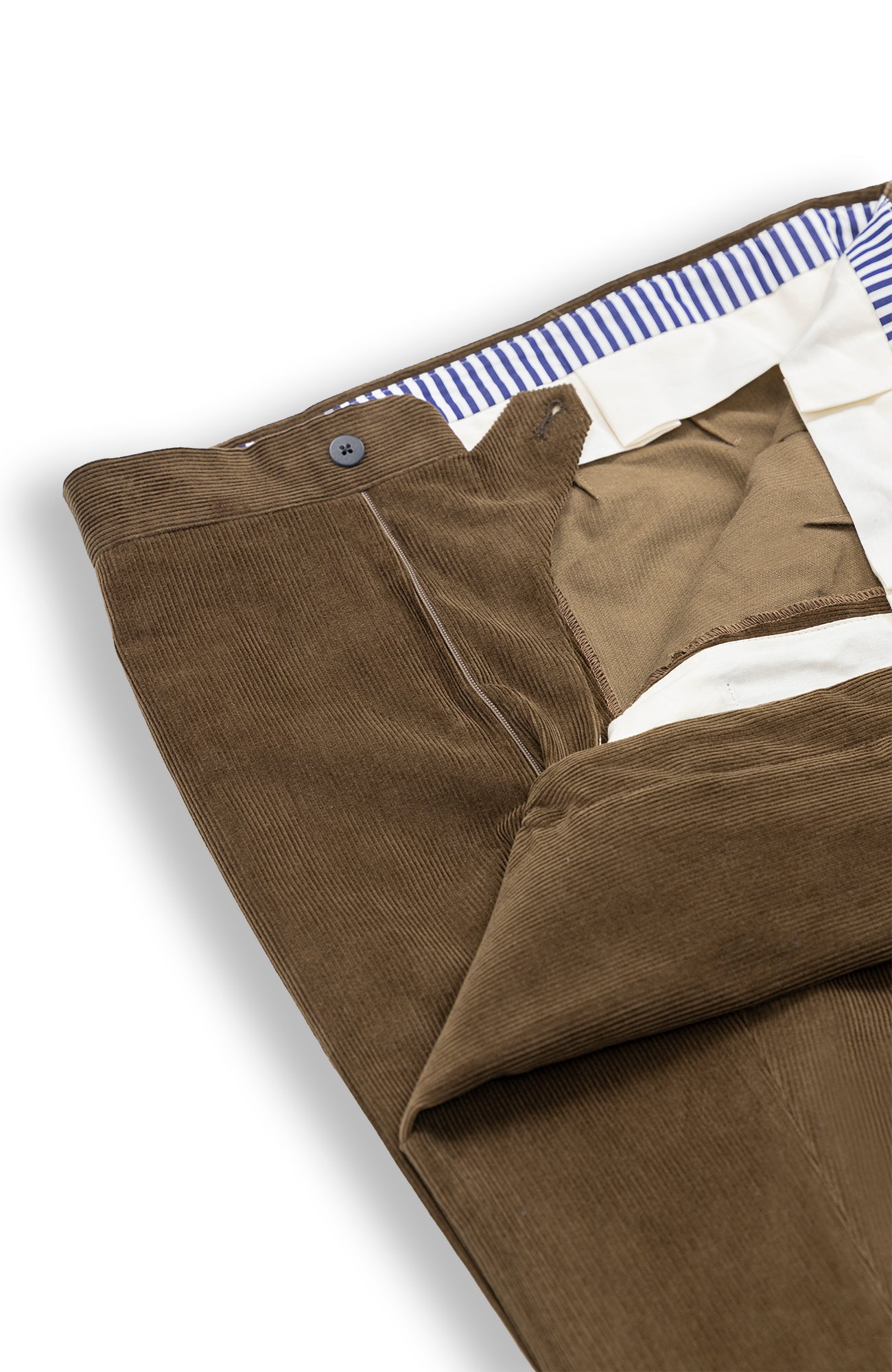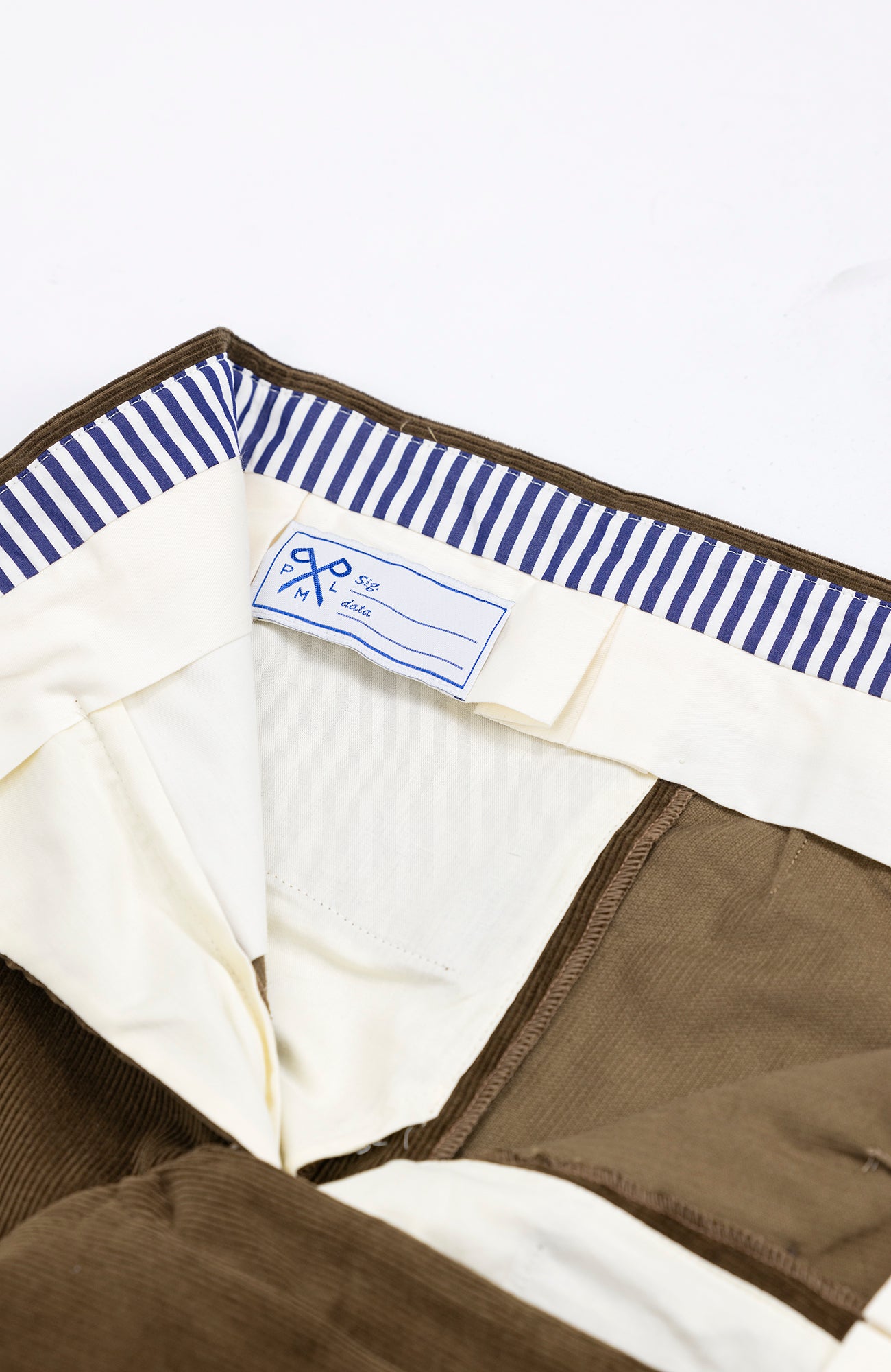 Waistband with our signature blue and white lining by Thomas Mason.