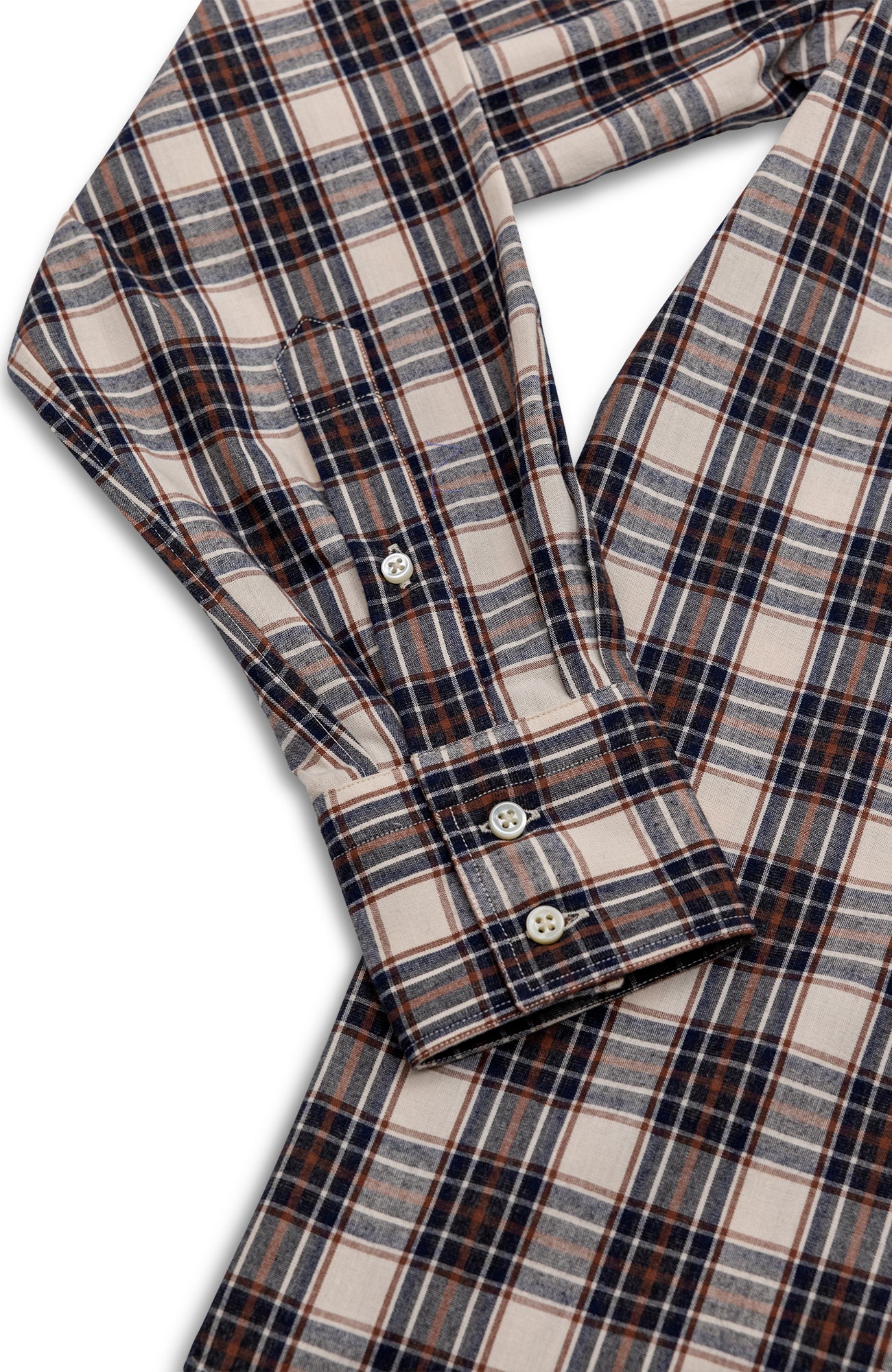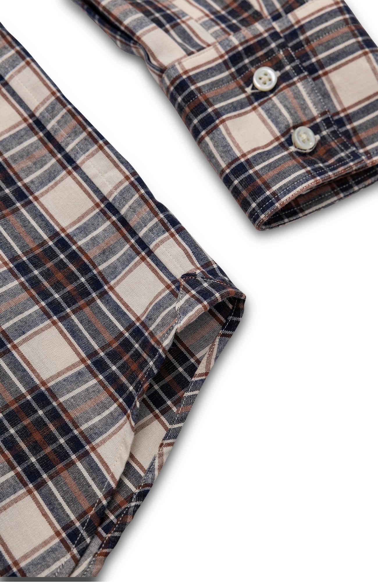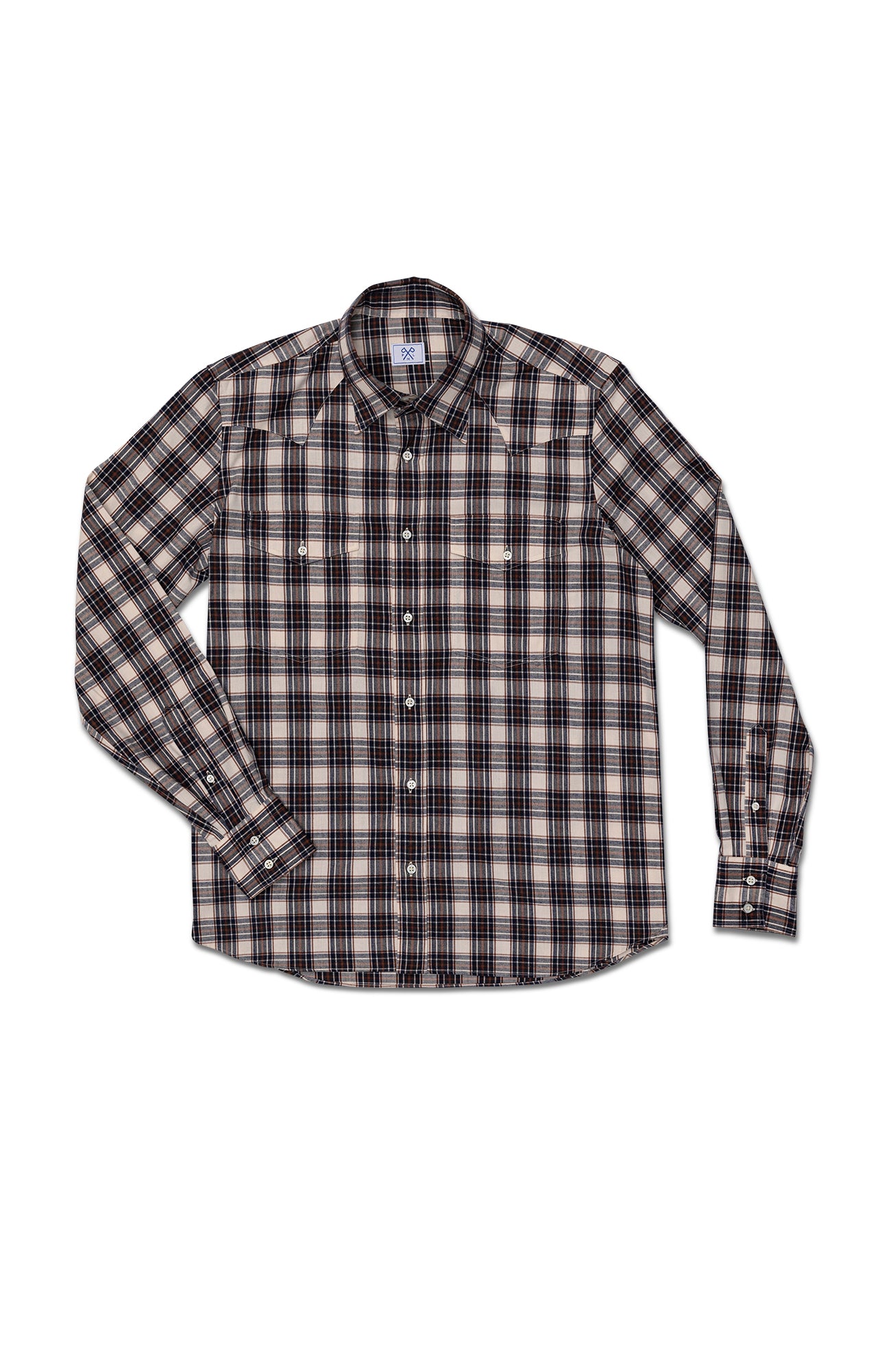 Our western shirt with our signature collar, Mother of pearl buttons, two chest pockets in a light flannel cloth made in Italy. You can be the most dapper of the cow boys.